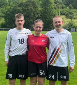 Ein besonderes Highlight brachte der Sommer für drei unserer Nachwuchstalente: Pauline, Arne und Emil wurden in die Jugendnationalmannschaften des Deutschen Frisbeesportverbandes berufen und durften bei der Europameisterschaft 2025 bzw. beim Youth Summit das Nationaltrikot tragen – eine große Ehre und ein toller Erfolg für unseren Verein. Für Pauline ging es eine Woche mit der U20-Nationalmannschaft …