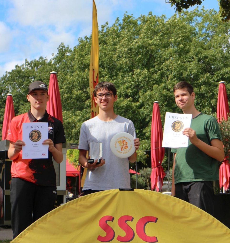 k: Sieger der Junioren (v.l.n.r.): Aik Kurio (2.), Elias Löw (1.), Hennes Meyer (3.)